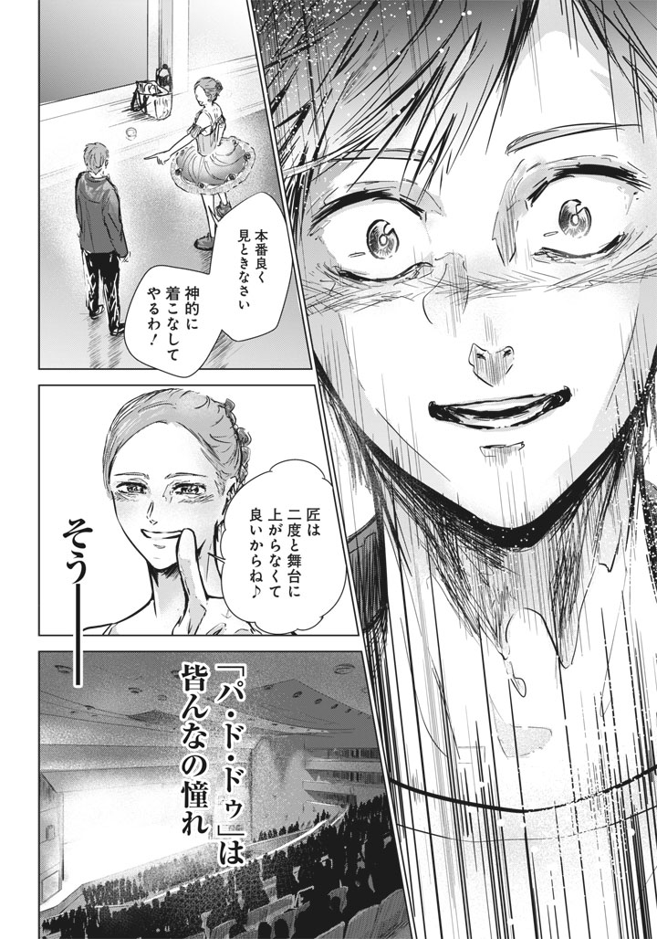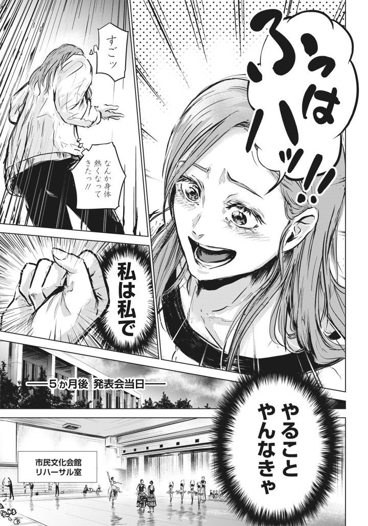 - この作品では、感情をモノローグやセリフで詳細に説明しすぎず、キャラクターの目や表情、行動、手の動きだけでも表現しています。例えば21ページ目は匠のイラつきを「握りしめた拳」で、36~37ページ目では未央の衝撃と高揚感を「荷物を落とし、無言でドアを閉める・笑い声と表情・手の動き」で表現されていました。
