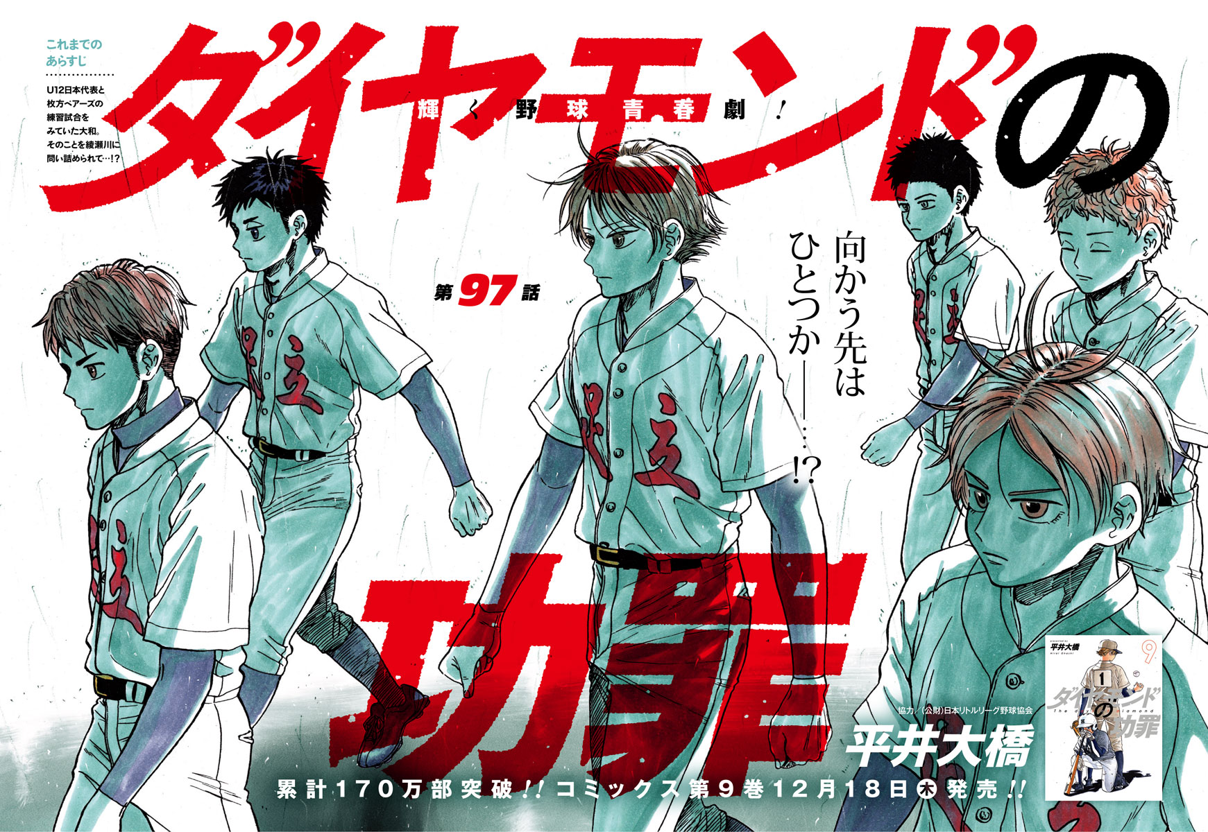 最新コミックス第9巻、12月18日(木)発売! 輝く野球青春劇『ダイヤモンドの功罪』が巻頭カラーに登板! U12日本代表と枚方ベアーズの練習試合を見ていた大和。そのことを綾瀬川に問い詰められて…!?